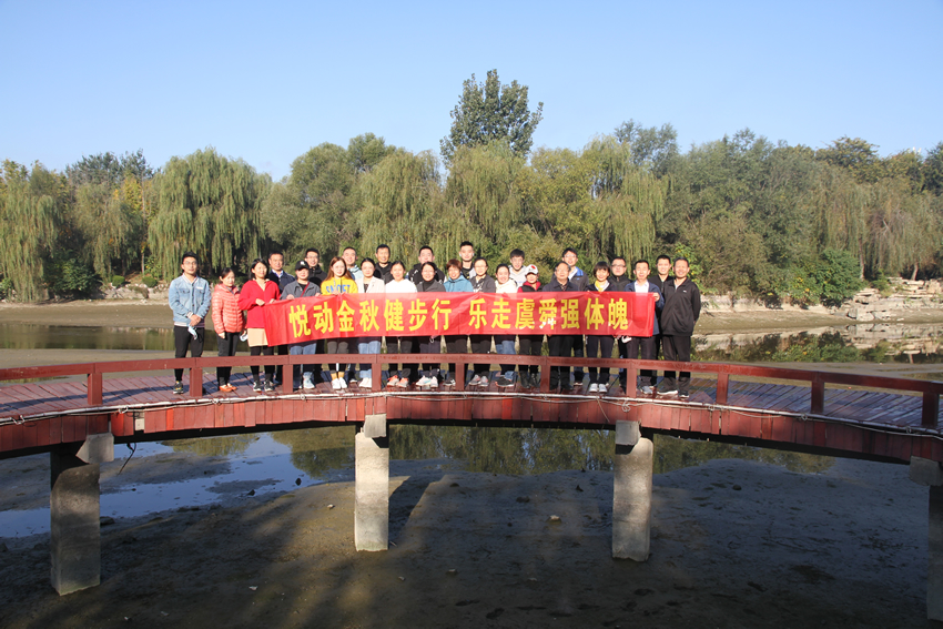 為積極響應(yīng)全民強(qiáng)身健體號(hào)召,豐富廣大職工業(yè)余生活,10月24日公司部分員工進(jìn)行“金秋健步行 樂(lè)走虞舜園”秋游活動(dòng)。大家興致勃勃來(lái)到風(fēng)景明麗的虞河邊,擁抱金秋,放飛心情,既增強(qiáng)了體魄,又增強(qiáng)了團(tuán)隊(duì)凝聚力。