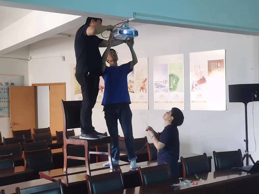 7月11日,李楊猛和譚國紅兩位同志協(xié)助信息部一起動手安裝、調(diào)試新購?fù)队皟x。