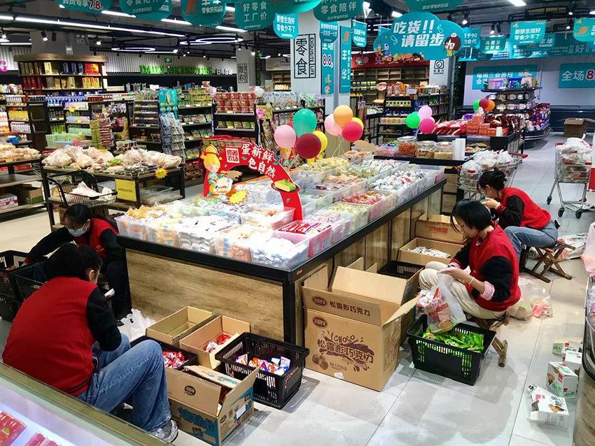 11月7日,福瑞瀾德同事們利用休息時間,裝配客戶在豐華零食折扣店訂購的雙十一零食禮包,確保配送及時。
